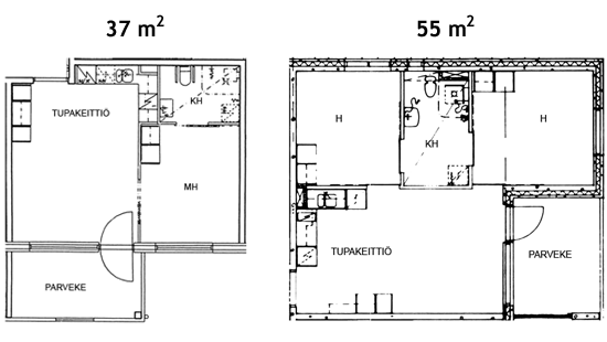 Huoneistojen koot vaihtelevat 37 m2 ja 65 m2 välillä ja huoneistot asukkaat kalustavat itse. Palveluasunnot ovat yksiöitä, joissa on tupakeittiö ja makuuhuone tai kaksioita, joissa on tupakeittiö ja kaksi makuuhuonetta. Jokaiseen asuntoon kuuluu tilava parveke.